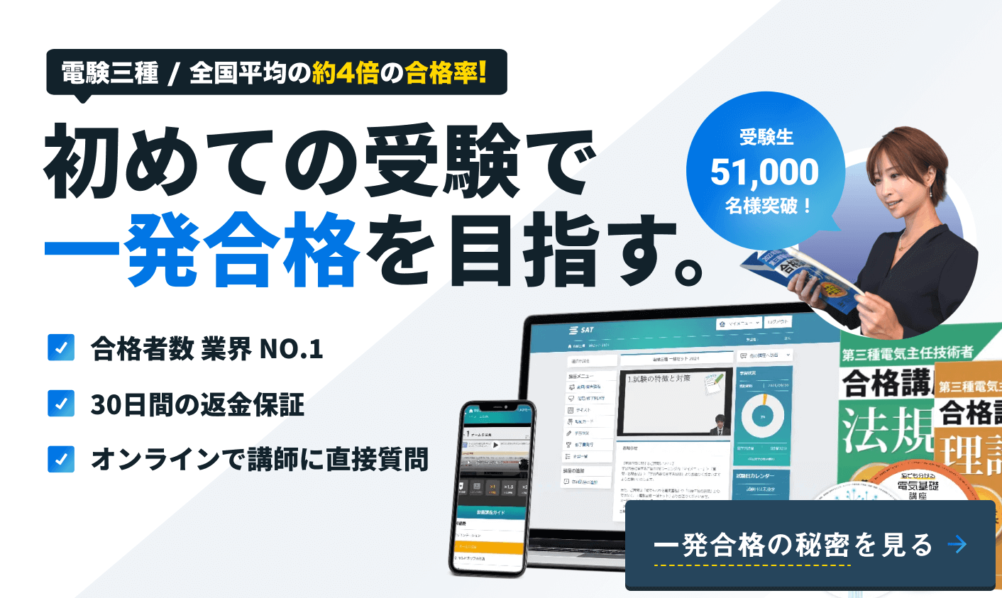 電験三種講座は、全国平均の約4倍の合格率、累計受講者数5.1万人以上の人気講座です。